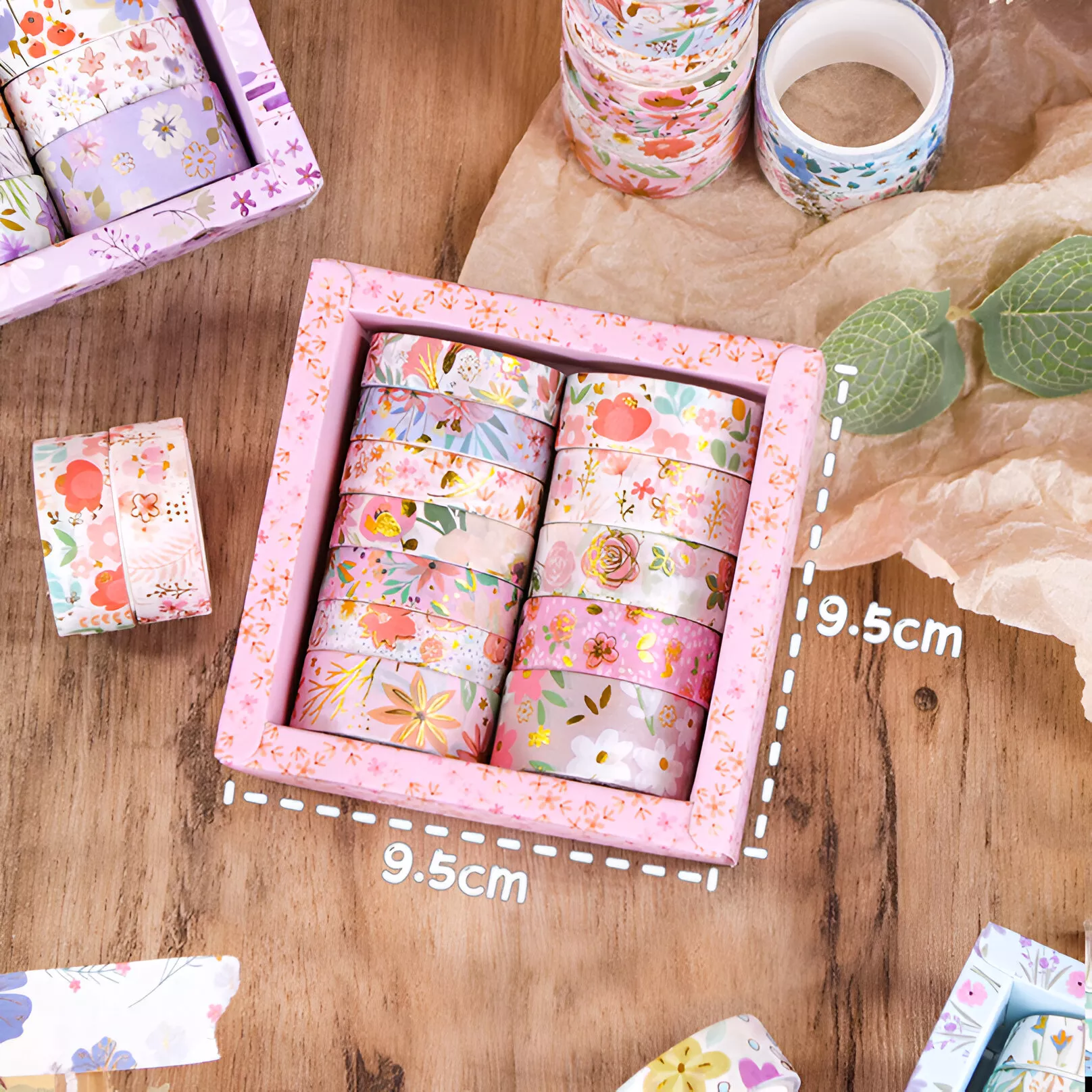 12 Rolls Floral Gold Foil Washi Tape Set for Scrapbooking & Journaling