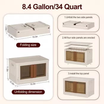 8.4 Gallon Collapsible Storage Bins with Lids - Stackable Storage Bins with Doors and Wheels, 3 Pack