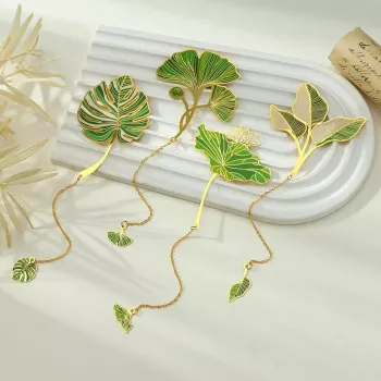 Elegant Lotus Leaf Metal Bookmark – Chinese Style Brass Leaf Design