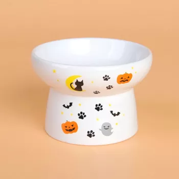 Elevated Cartoon Ceramic Pet Bowl – Skidproof High-Foot Design for Cats & Dogs