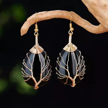 Handmade Black Agate Crystal Teardrop Earrings