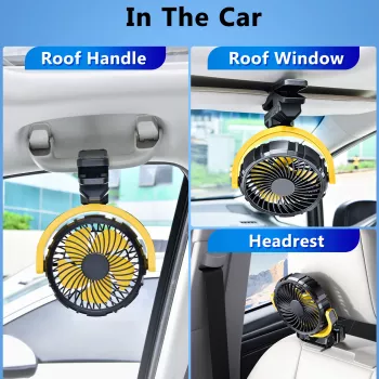 Portable Rechargeable Clip-On Car & Travel Fan – 3-Speed Cooling Breeze