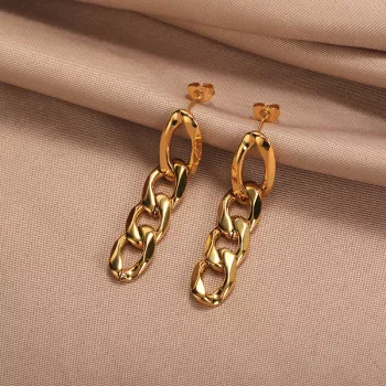 Statement Thick Cuban Link Drop Dangle Earrings – Stainless Steel Punk Fashion Jewelry