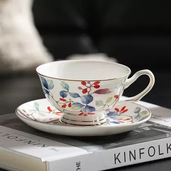 Vintage Floral Bone Porcelain Tea Cup with Gold Trim